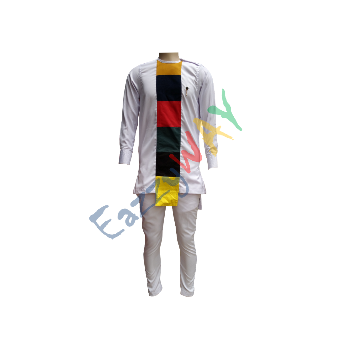Made with suit fabric with African print design, will be